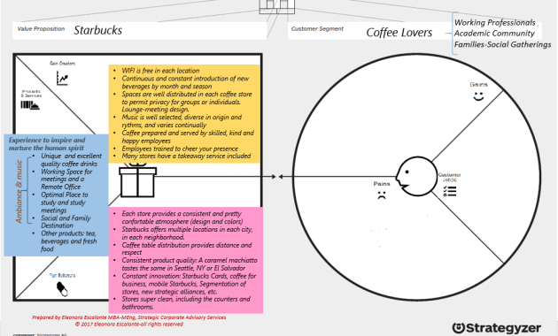 Value Proposition (III). From roasting and selling coffee to “inspiring and nurturing the human spirit”… Last week, I shared Alex Osterwalder-Ives Pigneur videos about designing value proposition canvas. Today, I would like to clarify that the “Value Proposition Canvas” is just the first step when […] eleonoraescalantestrategy 5 Jul 2017 Leave a Comment