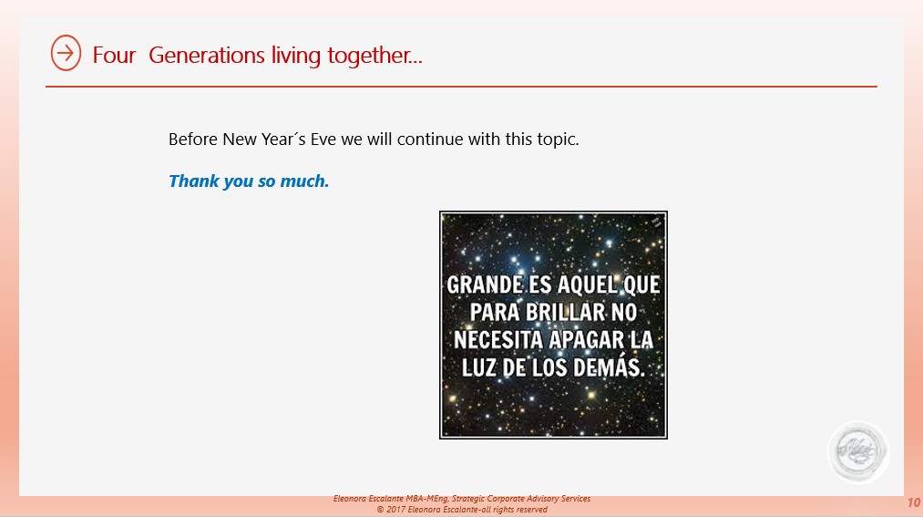 Eleonora Escalante Strategy is a pioneering state-of-the-art corporate strategy endeavor. We produce strategic reflections for the soul. We aim to provoke a deep desire to learn how to think properly, using a multidimensional perspective and a 360-degree approach.