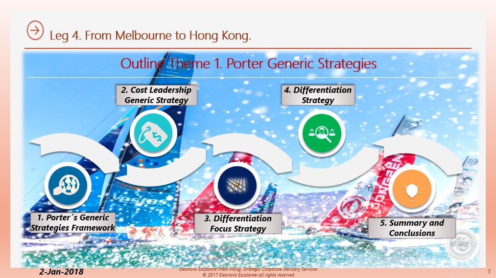 I wish to communicate to you in advance that I will do some changes in the overall timeline. When in Hong Kong, Leg 5 is just a tiny race of 100 nautical miles (Hong Kong-Guangzhou-Hong Kong) and I have to adjust my timeline properly. I will introduce the new timeline soon. As far as the content of this blog for the following days, I will race to finish this Leg 4 with two themes. Porter´s Generic Strategies and Social Media Segmentation (do you remember, we moved this theme from Leg 2 to Leg 4 some time ago).