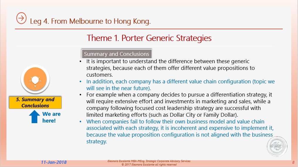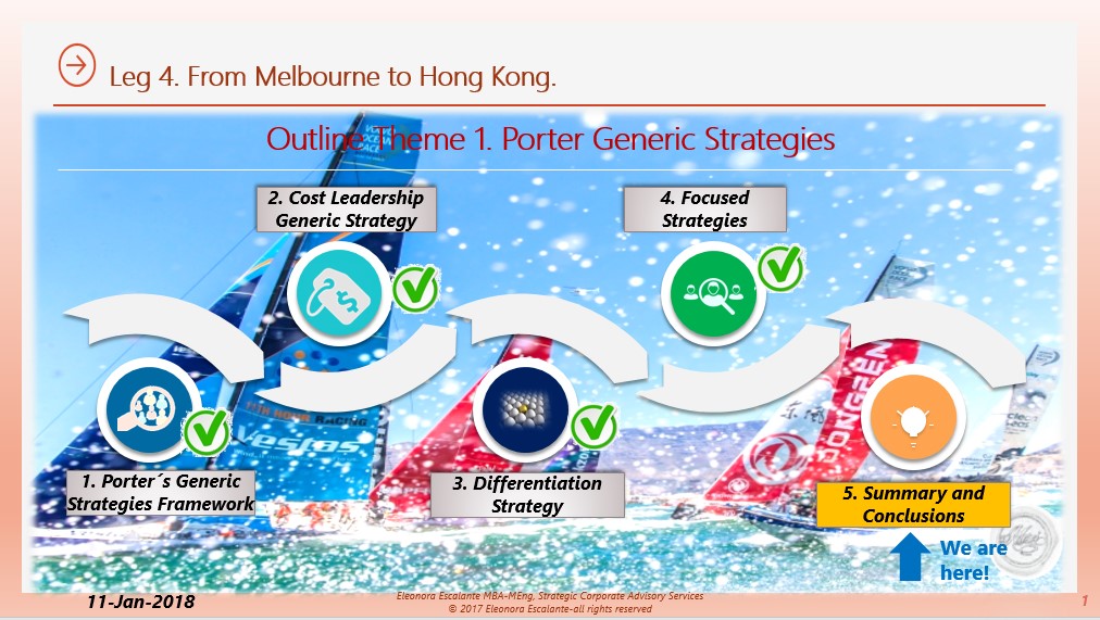 Today we will finish the topic of Generic Business Strategies. The three top teams at the moment at the Volvo Ocean Race 2017-2018 are the US-Danish Vestas, the Chinese Dongfeng, and the Dutch Akzo Nobel. The teams are still in the Doldrums where there are no big tides, no fresh air (temperatures are high), and slow limited winds. I would like to share with you a video from one of the Teams about what is to sail during the Doldrums course conditions: