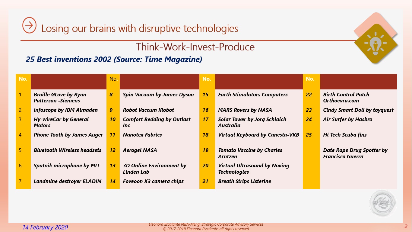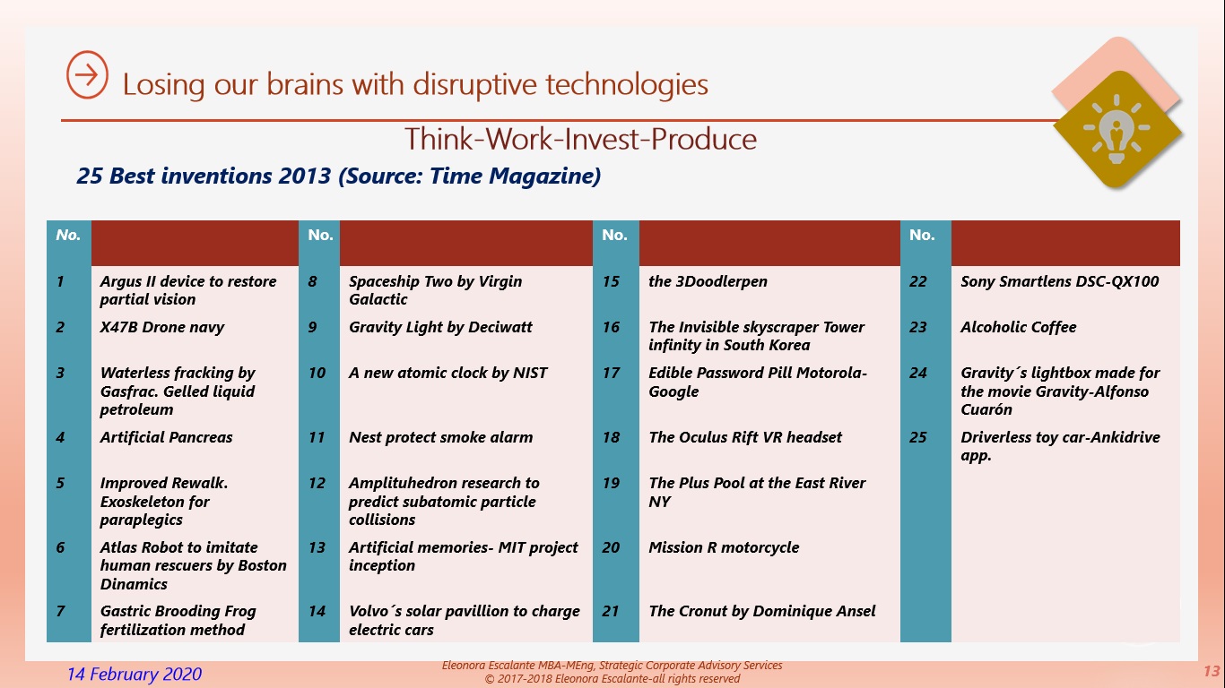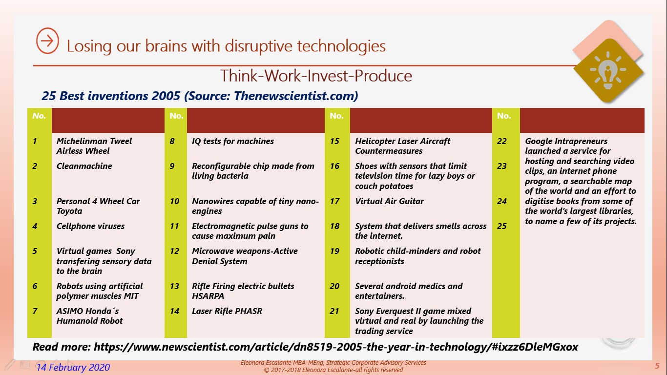Please download and print these slides in PDF format by clicking here: Eliescalante Losing Our brains with disruptive tech 25 best inventions 2000-2019.