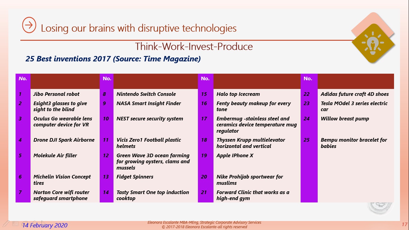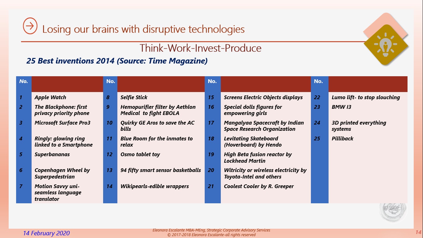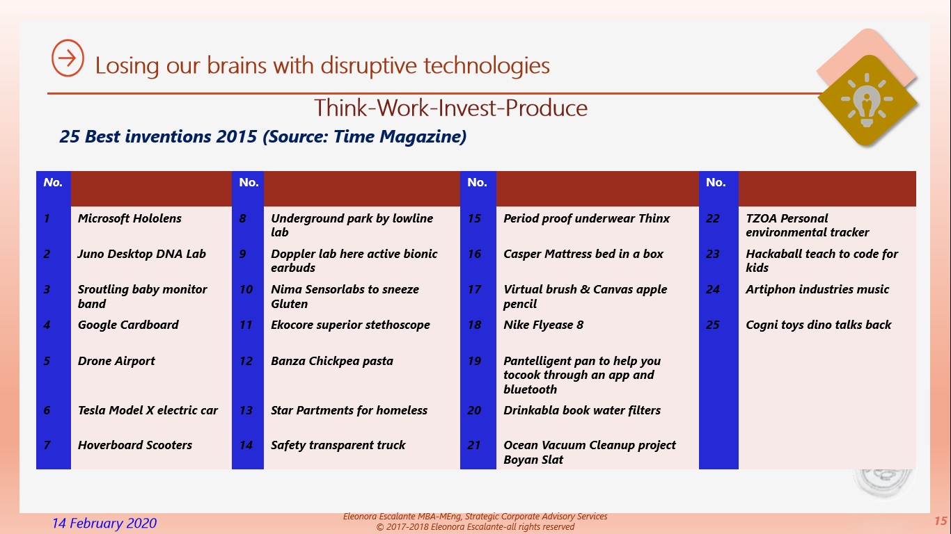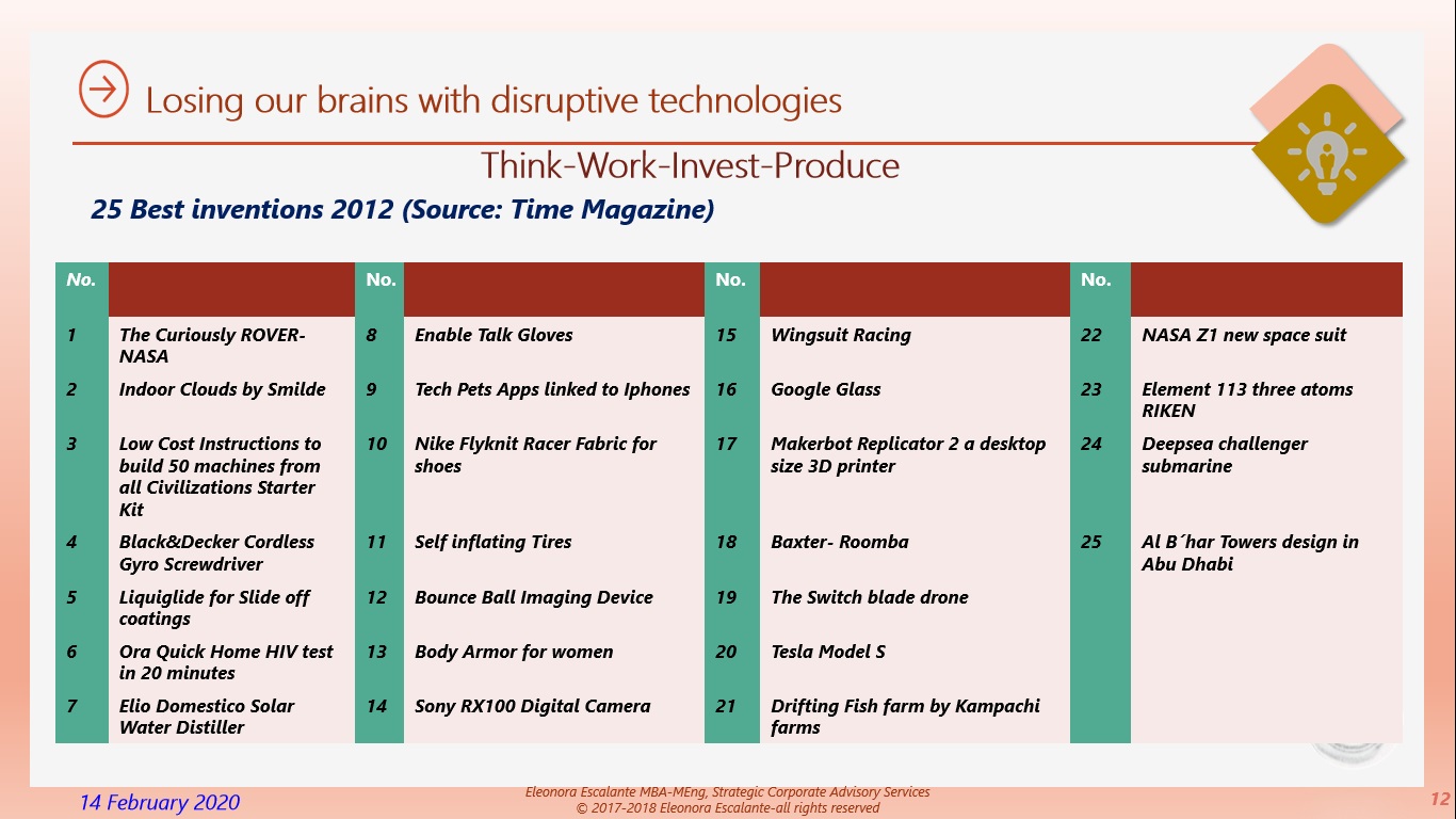 Please download and print these slides in PDF format by clicking here: Eliescalante Losing Our brains with disruptive tech 25 best inventions 2000-2019.
