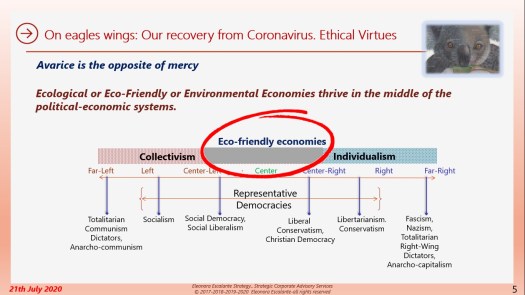 Repeating again. The paradigm of the Middle Class. Please remember that for Eleonora Escalante Strategy, the new paradigm of the Middle-Class for its expansion in the globe is: to survive, grow or expand through high quality-education skills, and without debt. The democratic model is the incipient political system that fits better for this purpose. And democracies are so new, that it is ridiculous to blame them when we are simply trying to overcome all the forms of existing totalitarianism. We have been polishing democracies for ONLY 231 years. It is so new!. As human beings, we also have been trying to find the proper market mixed economic system that can ignite the strengthening of the Middle-Class nation by nation. Professor Charles Hill has identified 4 broad types of economic systems: (1) a pure private-owned market economy; (2) a public government-owned command economy; (3) a mixed economy where certain sectors of the economy are private, meanwhile others are from the government; and (4) a state-directed economy. Each democratic country has the right to design, test, and choose the best economic system that helps their individuals to leave out of poverty to belong to the Middle-Class. In the process, hybrid economic systems have flourished. This economic system that is built through the years (decades) by trial and error, is particularly successful only for that specific country that has its unique resources on earth. The troubles with globalization happen when the economic model of one country on earth wants to overpass the limits of the others, or wish to be replicated in others without any type of analysis, in poor countries that do not hold the same resources, neither the same particularities. In our search to impose the beautiful economic model of developed nations into developing ones, we have forgotten that each country requires a tailor-made economic model that will help their democracies to improve, and so forth to strengthen that nation’s middle-class.