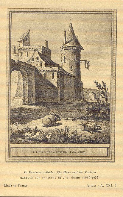 … the Hare lay down beside the course to take a nap until the Tortoise should catch up…