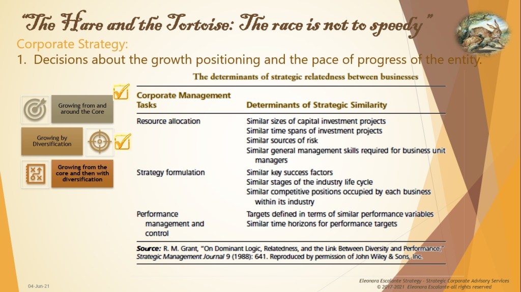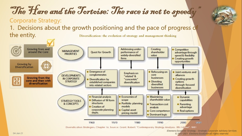 The Hare and the Tortoise: The race is not to speedy (XV). Diversification for growth not be dismissed.