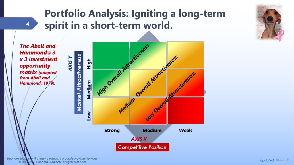 For the time being, we have finished with the 5 most popular portfolio analysis frameworks for SBUs of a corporation. Next week we will continue with the subject relative advantages and limitations of portfolio analysis when used for corporate strategic decision making and then for business strategy planning. We will also provide an overall summary of all that we have been writing since the month of August.