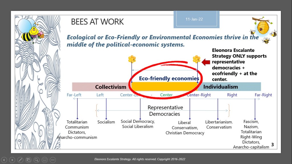 There is a lot to do. Humans need to adapt to the new challenges that are raising, and coming with our human evolution. The last thing we desire is to offer a stamp of approval to the autocratic model of our past monarchies that kept servitude, oppression, bondage, captivity, and slavery alive. We also are against working models that reduce the middle-class, even if they seem to take-out people from extreme poverty. Autocratic, despotic, totalitarian systems should be left behind because these were unfair under the Bible´s promises of God and Jesus Christ. We are glad that these oppressive dictatorial working society organizations (inherited from the kingdoms of the past) have started to be replaced, petit a petit, by incipient democracies. In many countries, during the XX century, all generations have worked hard to establish their still embryonic democratic models. There are plenty of countries for which the democracy has “really functioned”, but still there is a huge workload to do. There is a lot to do. Thriving democracies’ formats and flavors vary from here and there, but all of them are positioned in the center of the economical-political system’s spectrum. As usual, Eleonora Escalante Strategy celebrates and cherishes democracies as the only way to emerge and fix all the issues that we have carried on from our feudal past of empires and kingdoms that have proved to be wrong over and over again.