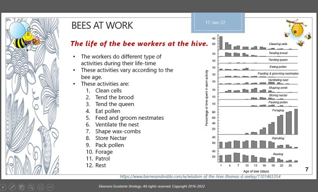 Bees at work (IV): The life of the bees at the hive. Have a magnificent, stunning, and blessed week of January 2022. It is Monday, and we wish to amuse you with the story of the bees, mainly how they live, what […] eleonoraescalantestrategy 17 Jan 2022 Leave a Comment