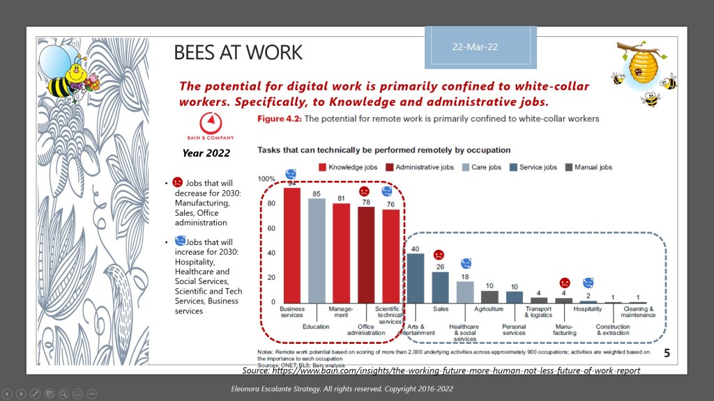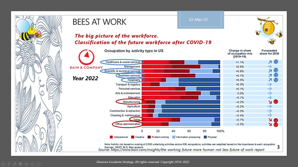 Our workplace shouldn´t be seen as a place for producing and getting a salary back. Our biggest confusion after finishing university, is that once we arrive at the workplace (no matter the type of work we do); we are seen as producers or employees for the producers of goods and services. And this short-termism view of our role on the planet makes us extremely inattentive of our mission on earth. Like the bees, we shouldn’t forget that our 80 to 100 years of life are for learning to become what God has envisioned for our life. Whatever your profession, career, company, or type of occupation; it is our responsibility to protect, promote and heal the environment in which we live. As it has been commanded by the book of Genesis. And it is also our duty to live loving ourselves as much as others. So, our workplaces should be the places to learn how to do in practice what God has established in the Bible as our mission on planet earth. The workplace as a learning organization has to pivot around that mission. What we learn in school (K12 and universities) also has to be related to that mission, in whatever discipline we are studying. And once we get a job, the workplace has to be seen as an expansive setting of continuum education for accomplishing our role on the planet.