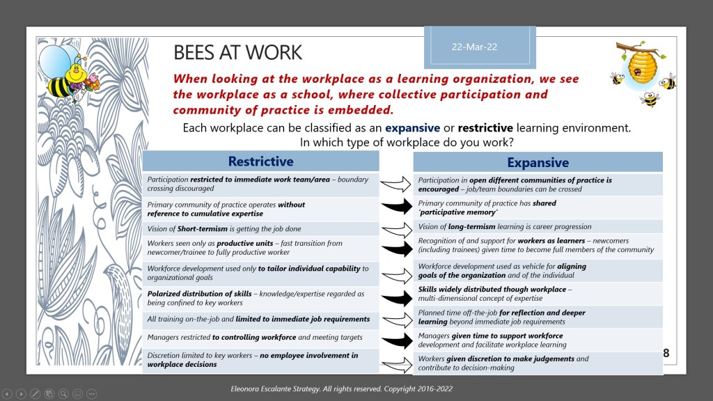 Bees at work (XXII). Workplace as a school. The new learning organization (part A)