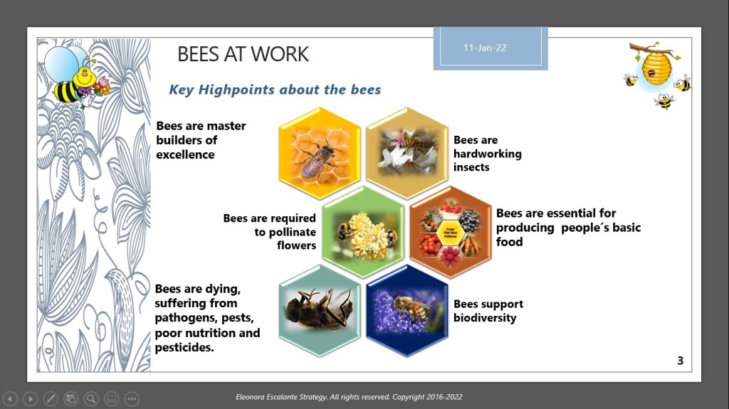 A new state-of-the-art working paradigm rationale. Our rationale is not just for sharing what we think, or to make money (we have not cashed one single absurd penny with our publications since 2016). We really want to cause you to ponder and think more about what we write, triggering that you take that seed in your mind, and do something about it. In the case of the “Bees at work” saga we really want to contribute to show you that the bees are in trouble, regardless they continue doing their honey collection and reproduction “as usual”, but the bees´ issues are the same problems humans have… with the difference that we as humans are causing the difficulties to the bees and ourselves. Therefore, we are responsible to change. In this saga, for a new working paradigm in the future.