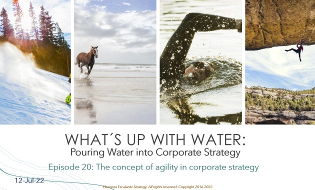 What´s up with water: Pouring water into your corporate strategy. The concept of agility in corporate strategy (XX) July 12th. A new post is being uploaded today. Today we will change our substance approach. During the last 9 weeks, we dedicated all our efforts to showing you the […] eleonoraescalantestrategy 12 Jul 2022 Leave a Comment