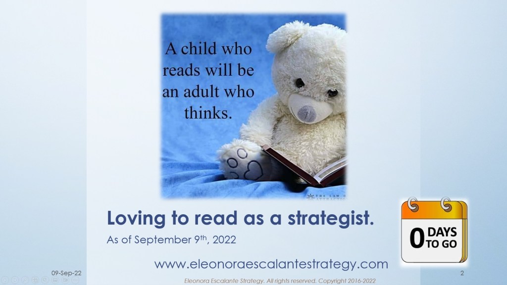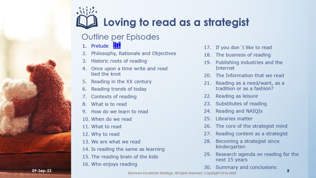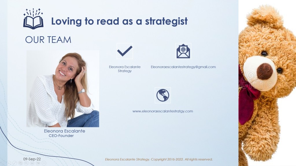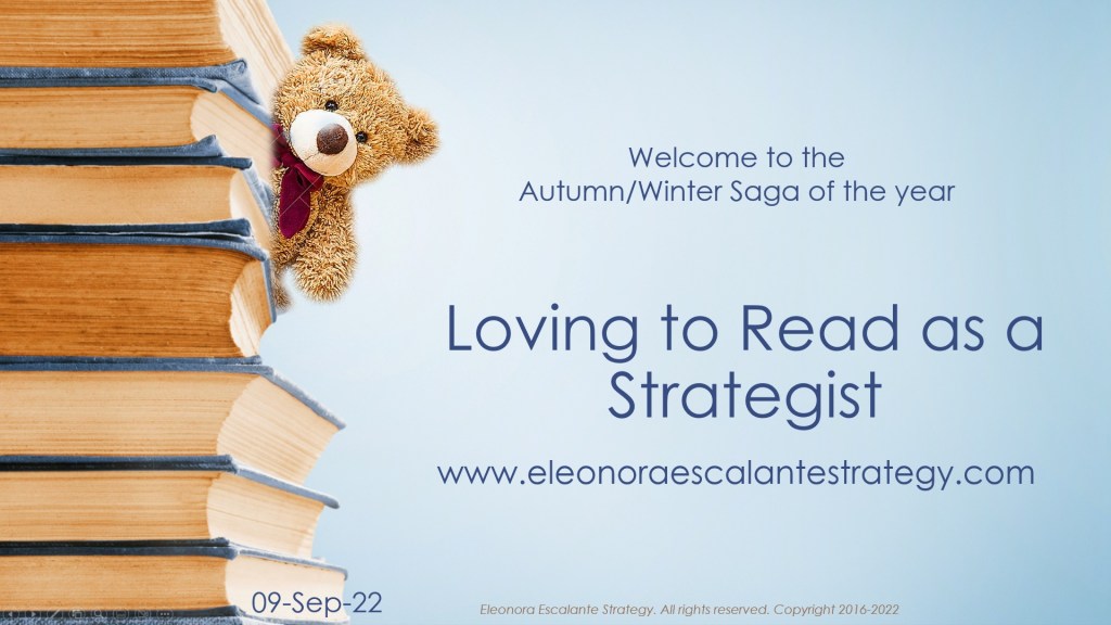 See you next Tuesday 13th of September, with the second chapter of the saga “Loving to read as a strategist”. Thank you for reading to me.