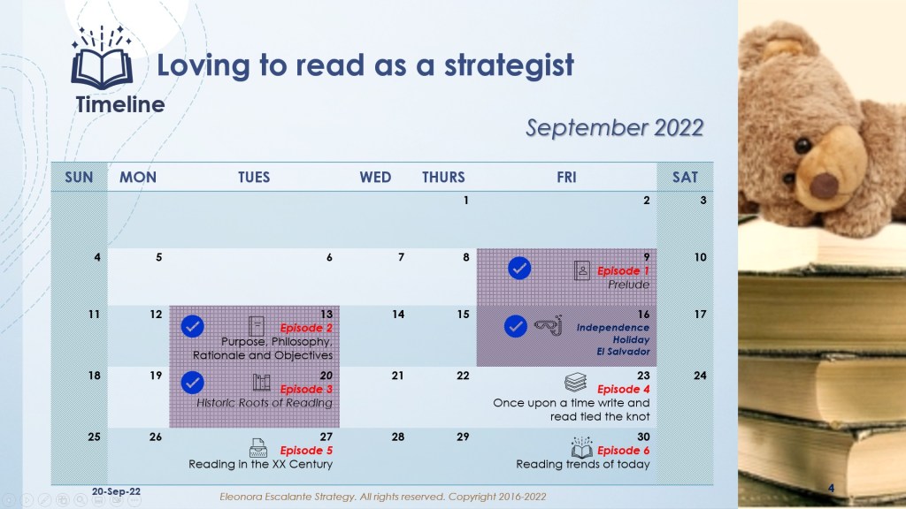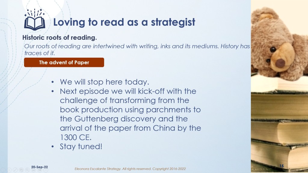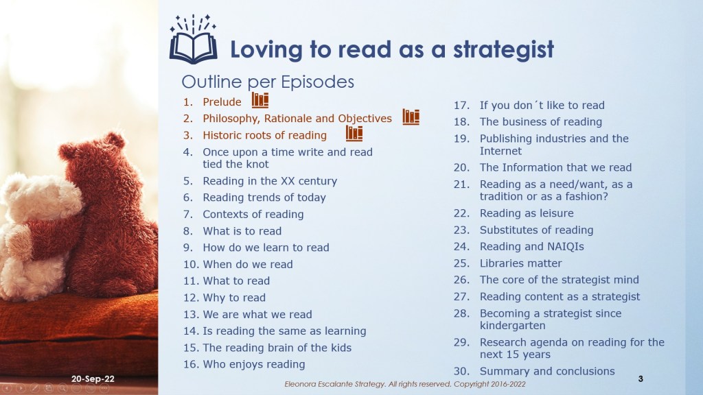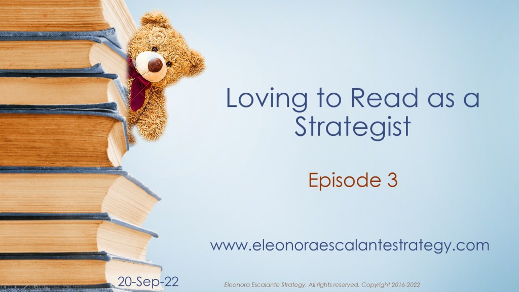 See you next Friday 23rd of September, with the fourth episode of the saga “Loving to read as a strategist”. Thank you for reading to me.