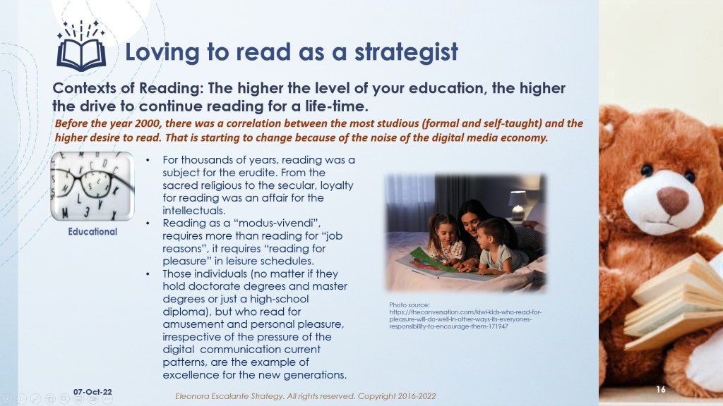 “Loving to read as a strategist”. Episode 8. Contexts of reading.