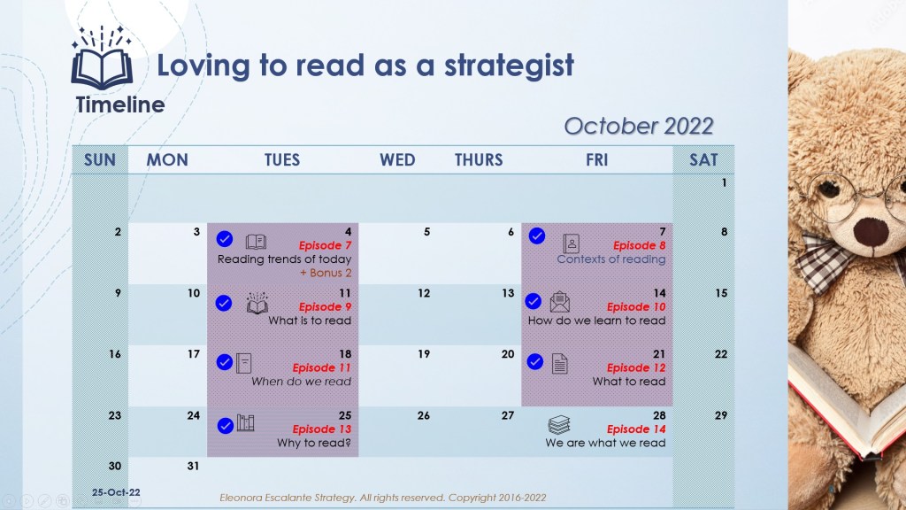 See you next Friday 28th of October, with the fourteenth episode of the saga “Loving to read as a strategist: We are what we read”. Thank you for reading to me. Blessings.