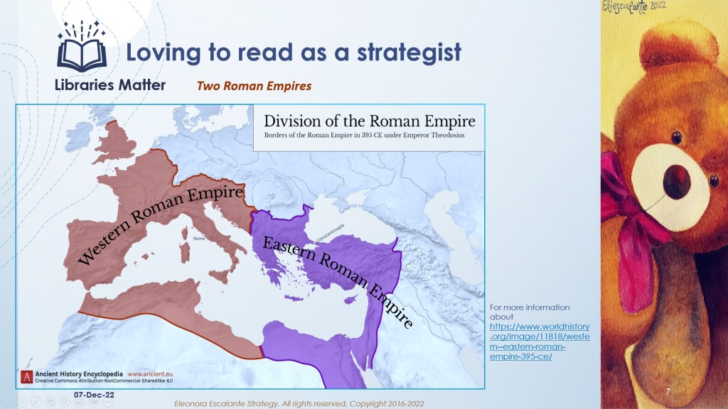 The western part of the Roman empire was characterized by invasions, wars, insurrections, and anything that was “barbarian” taste. Italy and its private or public libraries as a heritage from the prosperous days of the Roman Empire disappeared town upon town. When the Ostrogoths took it in the 6th century, Rome was shrunken and ravaged, not just in population but also without funds to support libraries anymore. On the other hand, the eastern part of the roman empire was able to spare barbarian invasions and remained stable up until 1,453, when the Turks completed their conquest with the capture of Constantinople. The top libraries of the eastern roman empire were in Constantinople: One linked to a university; another one at the palace for the royal family and the civil service; and the third one, a theological collection, the patriarchy’s library.