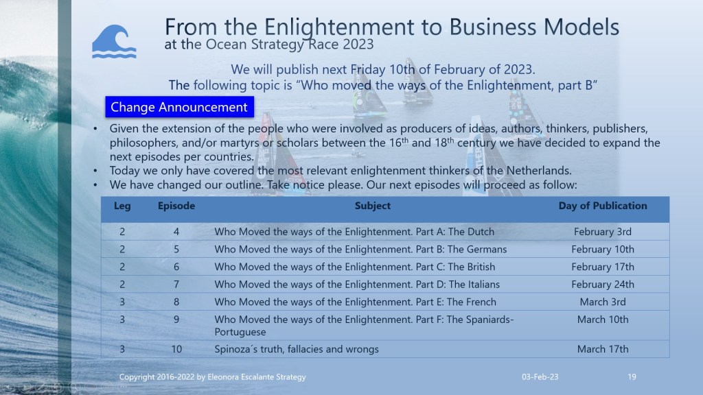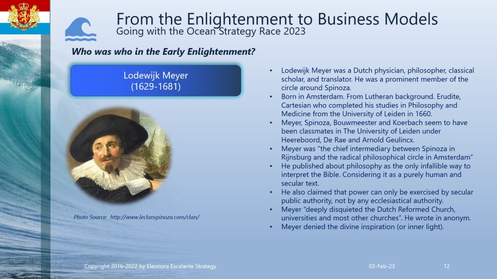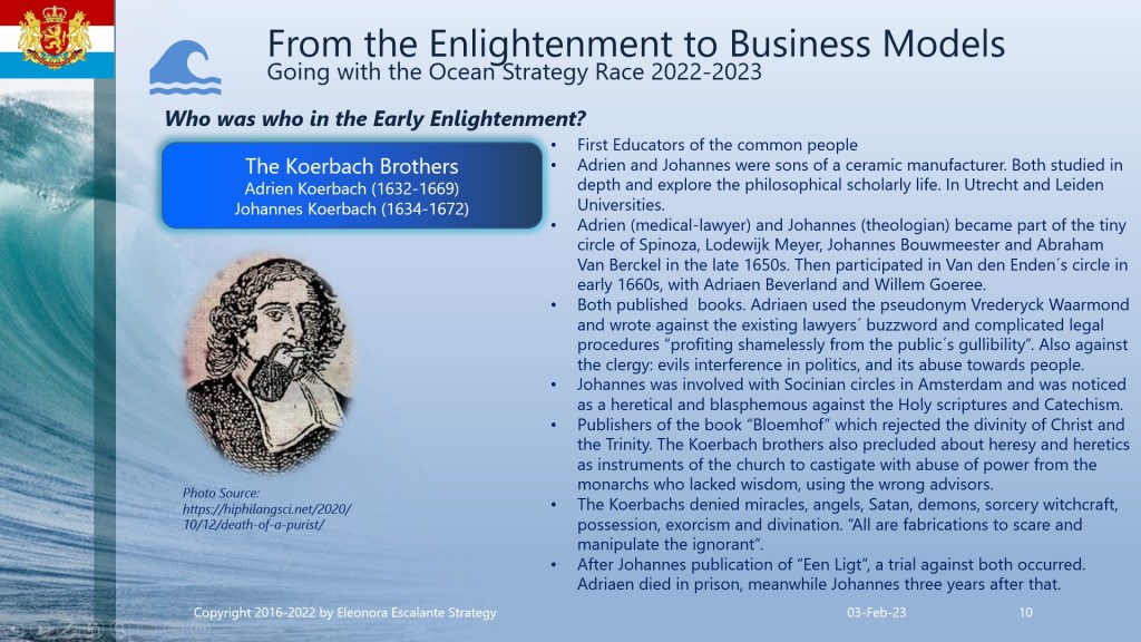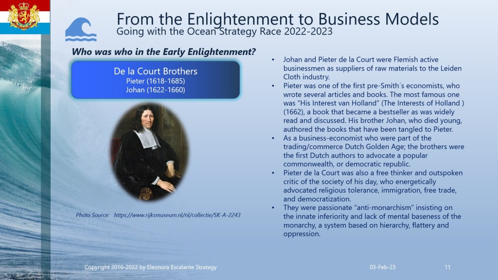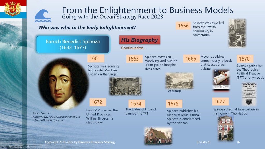 Find attached the set of slides that I have prepared for you today. This document agglutinates the main profiles of the Dutch Philosophers during the Dutch Golden Age. Even though I am a firm believer in God, the Holy Trinity, and the miracles of Jesus as the Son of God, our redeemer; I must show you the mental framework of the Enlightenment figures of that time. So please, be consequently mature to understand our narrative and the facts of these players. I am not doing any judgment on the past history. I am only showing you my inferences when studying the thoughts, the mental frameworks, and the philosophy of corporate strategists of the merchant empire’s epoch. Is it a coincidence that the same epoch of the Enlightenment was the same time in which the business model of merchant empires expanded?. Can you see the overlap? By understanding how the corporate strategy leaders were thinking, then we will be able to comprehend from where are we starting our current theories of globalization and our current business models of today. You can download the document and print it in PDF.
