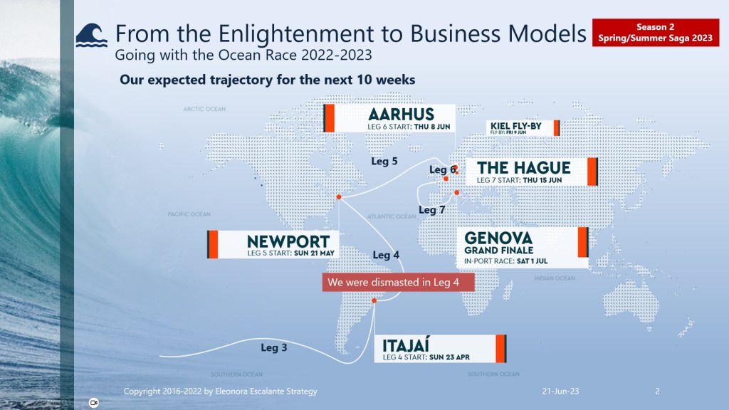 Since this leg includes both types of boats (IMOCA and VO65), the fleets are turning to the east towards the Strait of Gibraltar and the Mediterranean Sea. The winner of the Vasco da Gama Mirpuri Foundation Prize has been the VO65 boat Wind Whisper Racing Team. Meanwhile, at this moment, “the GUYOT team is sailing to its home port in France, while the 11th Hour Racing Team made repairs to its IMOCA and is heading towards Genova intending to race the last In-Port race of this edition on 1st July”(6). There are still more than 1000 nautical miles to cover before arriving at the finish line, and the light climate is not going to make it easy for the sailors.