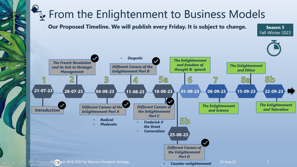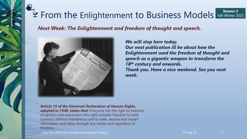 Our next publication will be next Friday 1st of September. We will continue with our journey with the topic: “The Enlightenment and Freedom of Thought and Speech”. Blessings and thank you for reading our episodes.