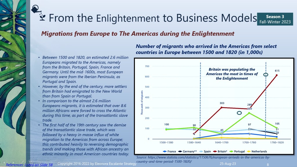 The counter-enlightenment caused self-harm to those who embraced it, no matter if mild or strong. After the French Revolution, the trend was to be “equal, fraternal, free”. Anything “counterrevolutionary” was combatted. Through their thoughts, theories, counterattacks, and rival philosophies the Counter-Enlighteners triggered a boomerang for themselves. The most fervent example has been the episode of the Jesuits. In times of chaos, the persecution, suffering, and insecurity were huge. Most of the descendants of the counter-enlightenment escaped and settled in the Americas. Look at slides 8 and 9. Now I am sure you are able to grasp why Latin America still holds elements of a powerful culture of “counter-enlightenment”. And why the majority who suffer from multidimensional poverty (the non-educated base of our population) who have no idea of what I am describing, are objects of deceit by opportunistic leaders who are using the “excesses” of the “counter-enlightenment” to arrive at power.