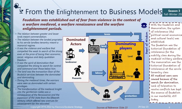 From the Enlightenment to Business Models. Season III. Episode 10. Feudalism, Enlightenment and Toleration Part B. Adorable readers, I wish you a fantastic weekend ahead. Find below all the work that I have done during the week. I am tired at the moment, so I will […] eleonoraescalantestrategy 29 Sep 2023 Leave a Comment