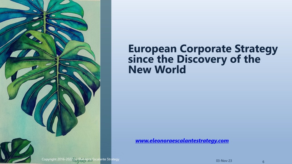 Our Philosophical Essence: Eleonora Escalante Strategy is a pioneering state-of-the-art corporate strategy endeavor. We produce strategic reflections for the soul. We aim to provoke a deep desire to learn how to think properly, using a multidimensional perspective and a 360-degree approach.
