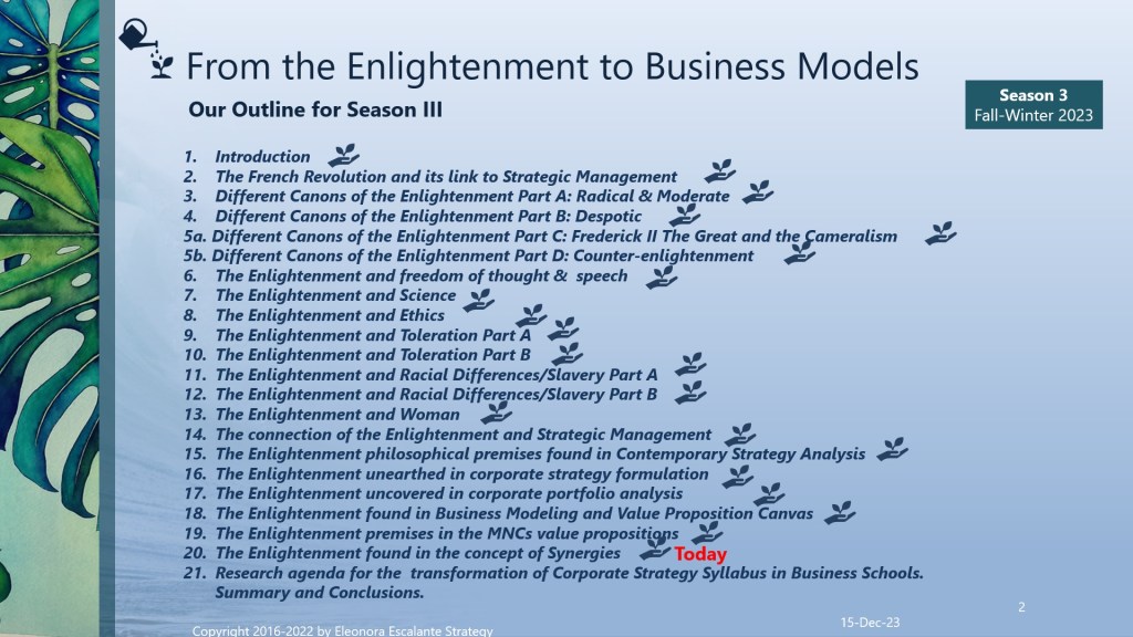 From the Enlightenment to Business Models. Season III. Episode 20. The Enlightenment found in Synergies.