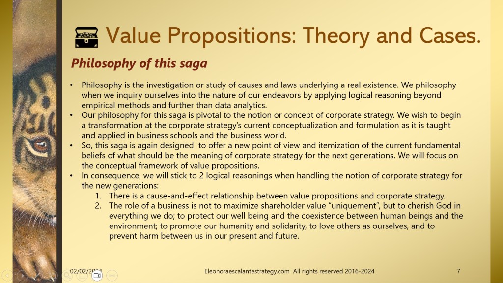 “Value propositions: Theory and cases” saga outline, purpose, rationale, philosophy, and objectives.