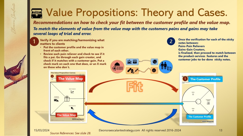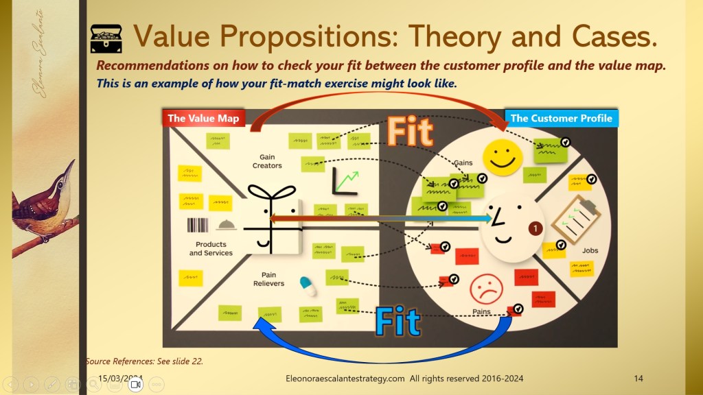 Wishing you a fantastic weekend. Today, as always, we will develop one of the most interesting chapters of our saga, in terms of the acumen that is required to build a good match or a perfect fit between the customer profile and the value map. In our past episodes, we have covered these two sections of the Customer Value Proposition (CVP) separately. Today we will connect the dots between both. The discernment here is crucial.