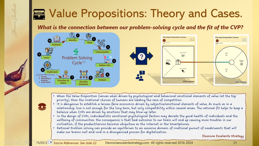 How to design good CVPs if the strategists and marketing specialists are addicted to the current state of this digital obsession for the NAIQIs? How to ignite this reflection in professors who are involved in teaching these aspects, if they accept the philosophy of behavioral economics as the foundation of our irrational products/services? How to be heard by advisors of prestigious consulting houses, if they are also immersed in the same mischievous addiction? How to exercise the freedom to choose, if the mobiles and the Internet have converted us (particularly after the COVID-19 pandemic) into tech-addict zombies of the NAIQIs (Nanotechnologies, Artificial Intelligence-robotics and automation included-, Quantum supremacy, and the Internet). In this context of drug tech obsession for NAIQI products and services, it is quite difficult to exercise free will, self-control, and moral responsibility. It is not even possible to talk about the issues and consequences of digital business modeling (including the digital CVPs). It is like trying to establish a conversation with someone in a state of abnormal drug dependence on heroin, crack, or intoxication with alcohol. Dear readers, this is the context in which we all live now.