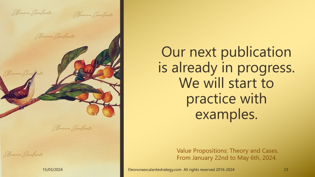 Let´s read the set of slides (our frame of reference) for today´s content. This package holds 23 slides, that will be your homework to read over the weekend. Every Monday, I return to refill our strategic reflections that surge upon realizing the value of analyzing them slowly and thoroughly. Feel free to share them, download them, and print them. When reading take notes next to where a question arises, and do not hesitate to go to the bibliography (slide 22) to answer any doubt. We truly recommend printing the slides, for the sake of clarity. Ask yourself questions when you accomplish your reading assignment.
