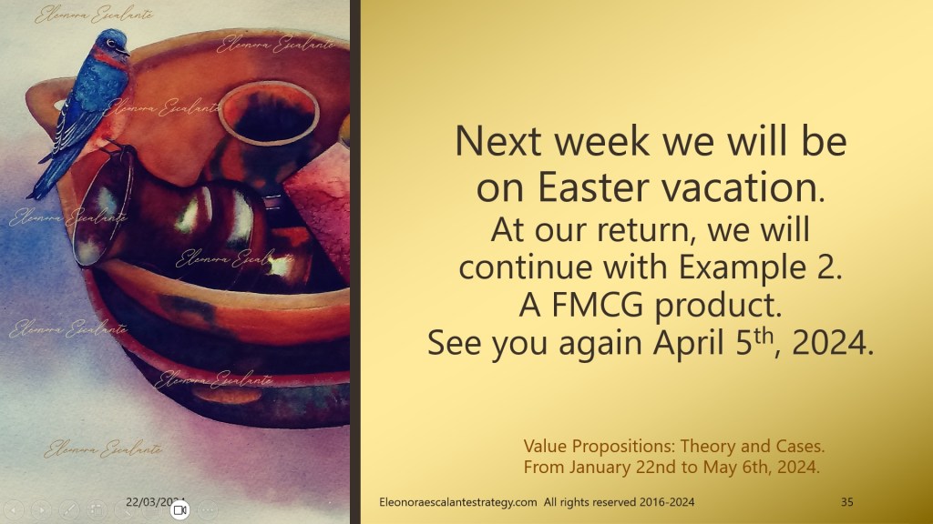 The Easter or Paques week starts today in town. El Salvador academic world will go on vacation from now until the 31st of March, but I will upload the strategic reflections over Easter week. Please remember that we publish our frame-of-reference slides only on Fridays, and we upload our strategic reflections later. Occasionally, if required we will add more additional episodes on Tuesdays. We always publish at the latest before 11:59 pm (CST). The 10th episode is about a Fast Moving Consumer Good (FMCG).