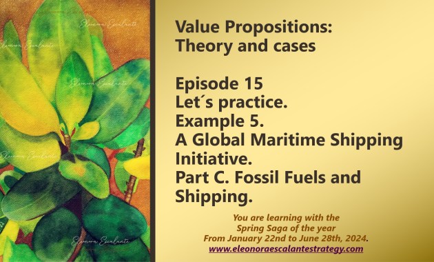 Value Propositions: Theory and cases. Episode 15. Let´s practice. Example 5. A Global Maritime Shipping Initiative. Part C. Fossil Fuels and Shipping. We hope you can enjoy and take advantage of our warming spring season. This week we have been researching and reading about this fascinating example that has taken us to […] eleonoraescalantestrategy 24 May 2024 Leave a Comment