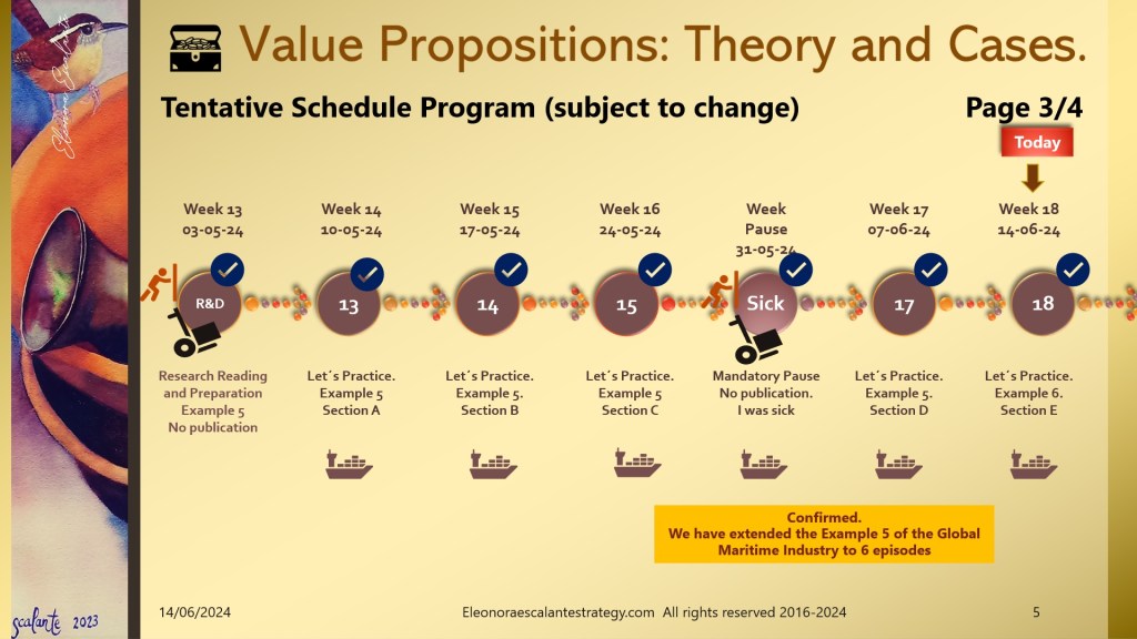 With this chapter, we have fulfilled most of the aspects required to understand the complicatedness of this case. This is the fifth consecutive publication about the global maritime industry’s fundamental learning. This knowledge is required before building the CVP. It hasn´t been an easy task, but we think we have done our best. We have simplified an enormous amount of books and information, by synthesizing and connecting the dots of all the previous elements to consider when we build CVPs for legacy projects of this behemoth impact. We have clarified that we will need 7 episodes to finish this example. See you next Friday 21st of June.