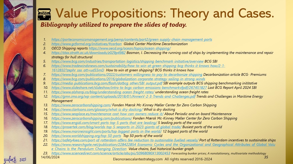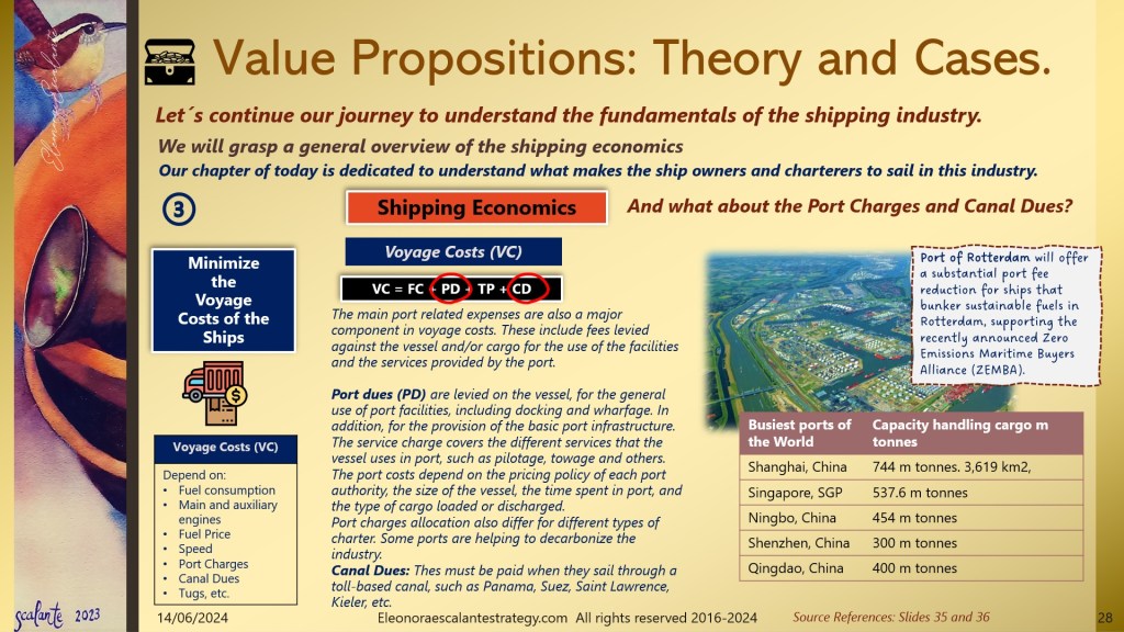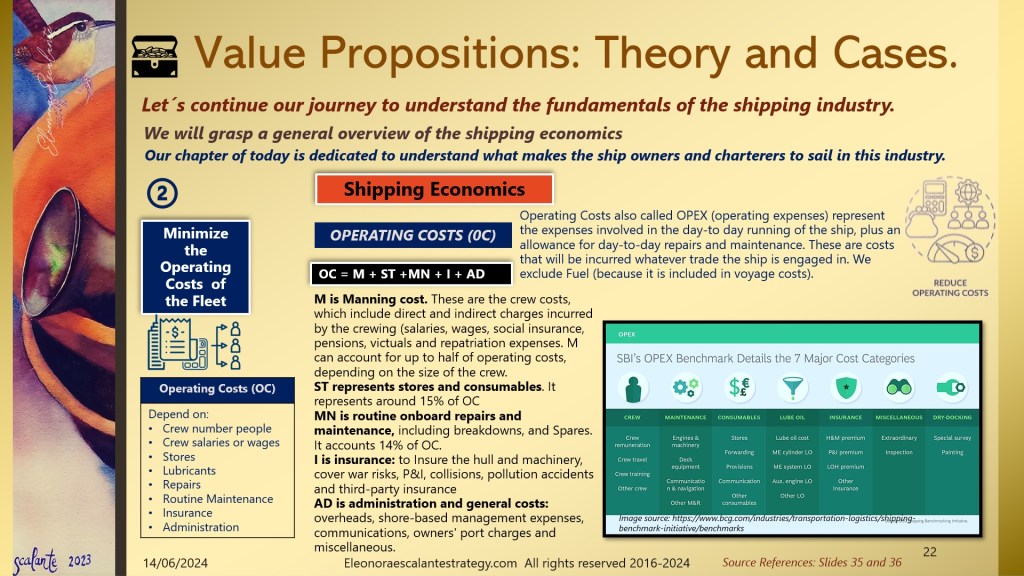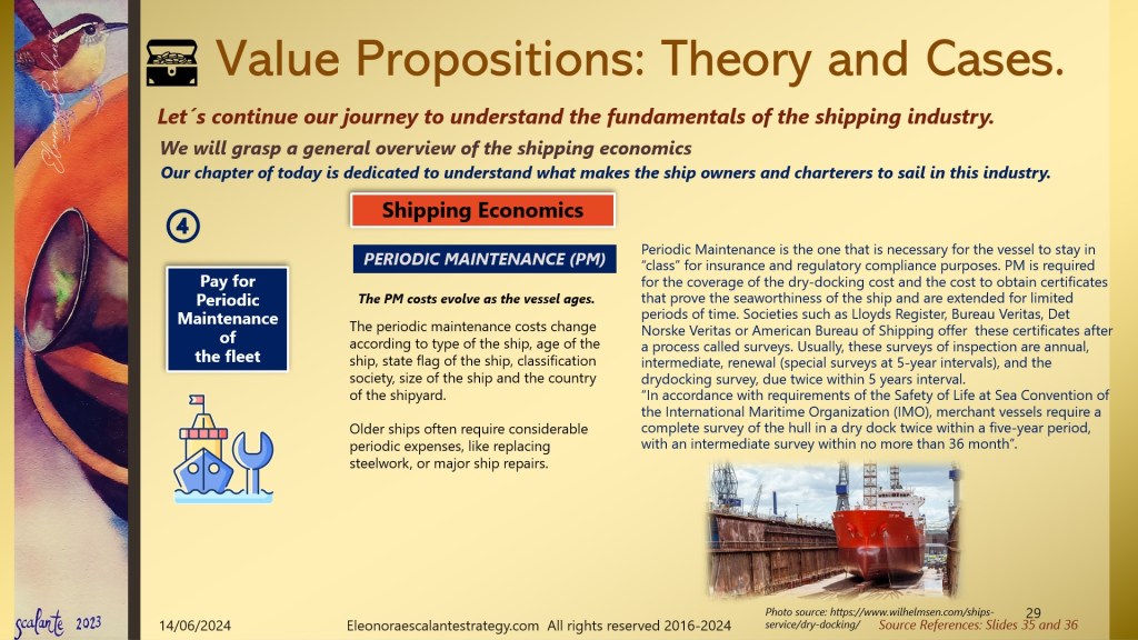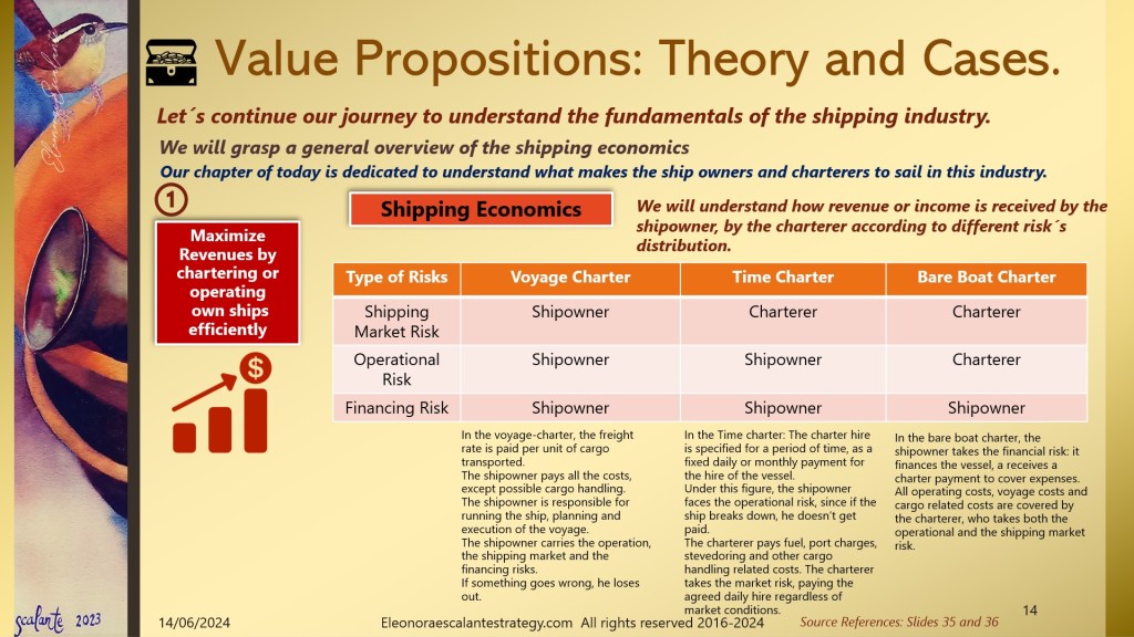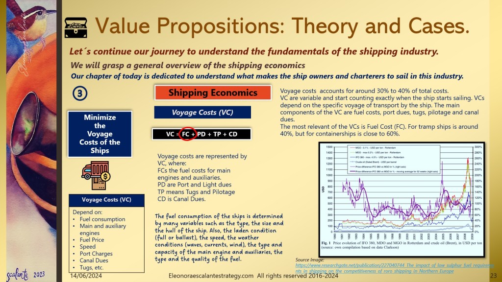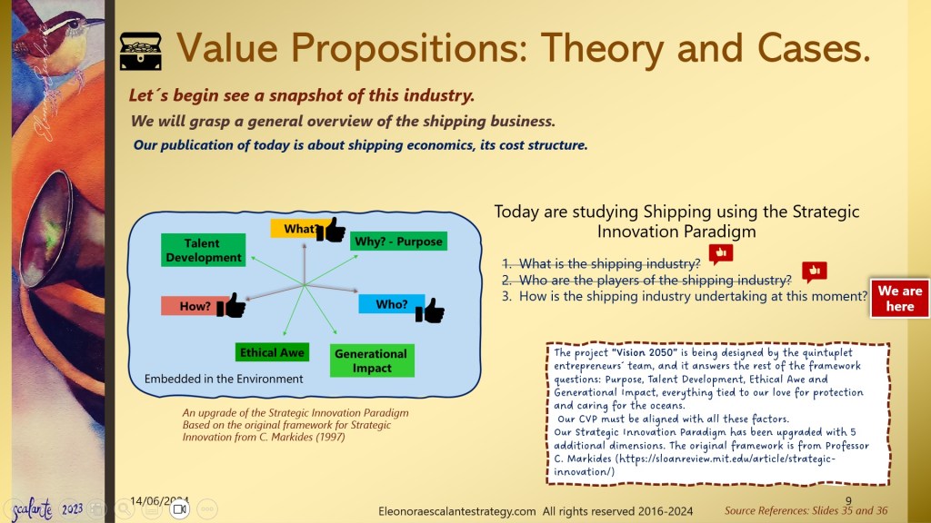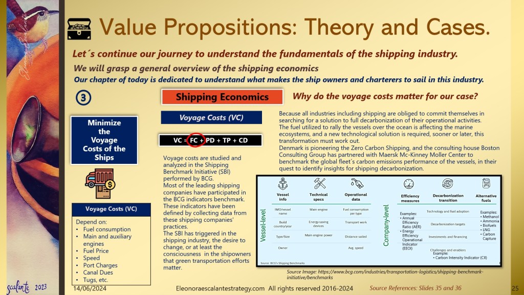 Today we will study the cost structure of shipping, and the revenue sources of the industry too. Find the following document of 37 slides. We request you to read it thoroughly, please. We have prepared the fundamentals and the most critical information that you will need to prepare the CVP for this project. Next week we will proceed with the construction of the value proposition, and this chapter is crucial for you. Feel free to download it, print it, and share it. Explore more information with the bibliography provided in slides 35 and 36. Feel free to ask me any questions through my inbox, which is located in the website tab “How to contact us”.