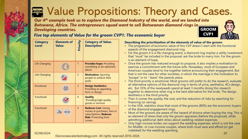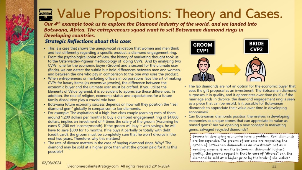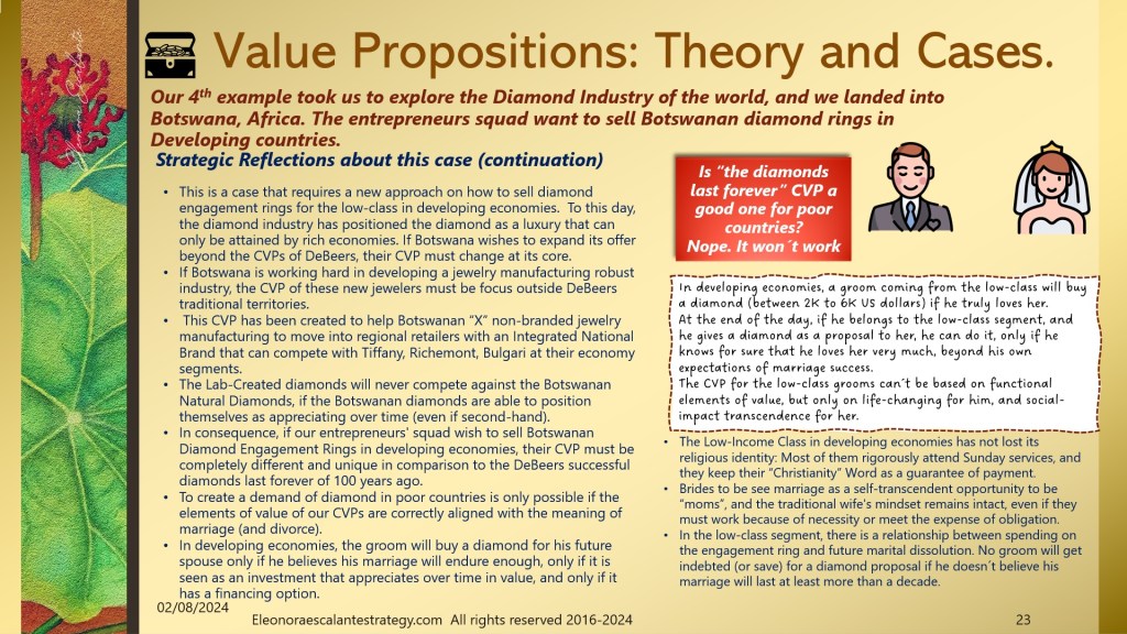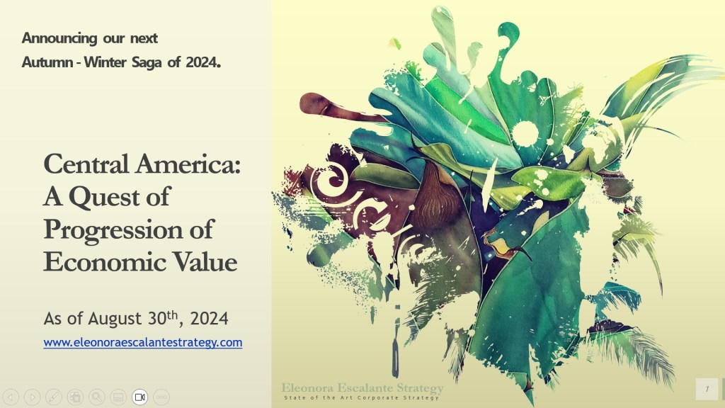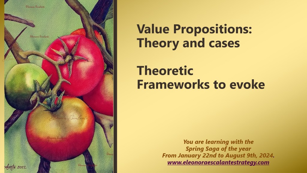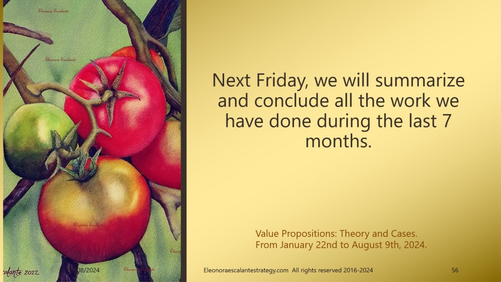 We have almost finished this extended saga “Value Propositions: Theory and Cases”. Next week is our last publication. Next Friday we will flow to conclude by connecting the dots of whatever has been missed today. As I mentioned to you last week, I have been requested to offer an economic saga about Central America. Consequently, our next saga of the year will be about the progression of the economic value of Central America, and we are going to stretch our limits with it. Stay tuned for more information during the following days.