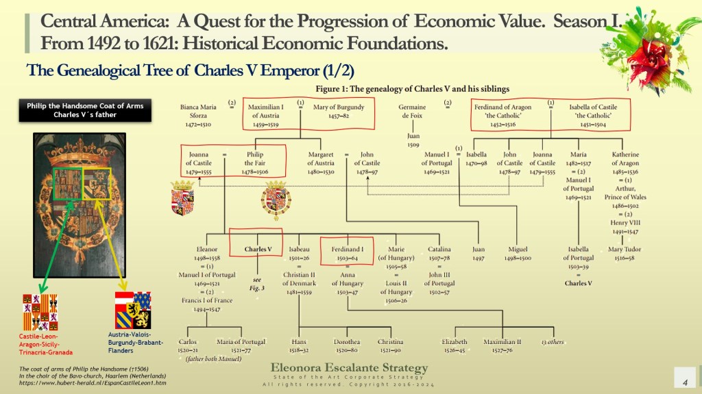 The Habsburgs´ good luck began with a matrimonial alliance between Maximilian I and Mary “The Rich” Valois-Bourbon of Burgundy that allowed the Habsburgs to grow in assets, territories, and economic benefits. Mary was the heir, the daughter of Charles the Bold (a descendant from the houses of Valois-Burgundy and Avis-Portugal) and Isabella Bourbon-Valois-Wittelsbach. Nevertheless, Maximilian I was an outsider of the French-Netherlands lands. He wasn´t liked by the people of Burgundy, but he defended it as if it was a Habsburg territory. Maximilian fought back against Louis XI of France’s attacks, defeating him at the Battle of Guinegate in 1479. When Mary died in 1482, Maximilian was forced to act simply as a regent for his son Philip the Handsome. Philip, by inheritance, became then the Archduke of Austria, Duke and Count of Burgundy, Lorraine, Brabant, Limburg, Luxembourg, Gelderland, and Milan. Count of Habsburg, Flanders, Artois, Palatine of Tyrol, Count Palatine of Hainault, of Holland, Zeeland, Namur and Zutphen. Prince of Zwave, Marquess of the Holy Roman Empire, Lord of Friesland, of Salijnes, of Mechelen, and the cities and countries of Utrecht, Overijssel, and Groningen (1).