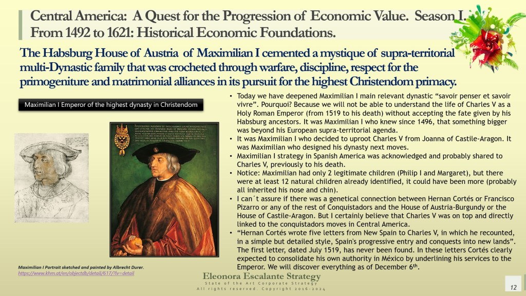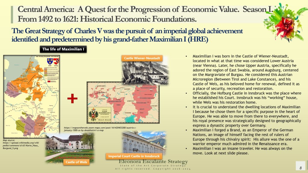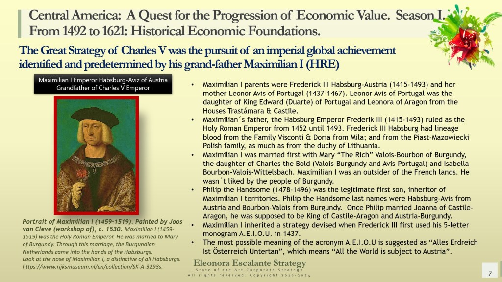 Today we will cover the life of Emperor Maximilian I, one of the most relevant figures in the history of Europe in the 15th century. Not studying him is like not knowing anything about Spanish America. Consequently, we decided to insert this episode to analyze Maximilian´s endeavors and his strategic plans for his descendants. His decision to betroth his Habsburg-Burgundian son, Philip the Handsome with Joanna of Castile-Aragón, was the beginning of everything we have lived in Latin America. It is of tremendous importance for all the descendants of the Indigenous populations of the Americas to understand Emperor Maximilian I because only then we will be able to comprehend the thinking context and the philosophy of the conquest and colonization of this region. By analyzing how Maximilian I was able to design and implement his corporate strategy in Europe, only then will we become conscious of the rationale that was behind the divergent phases and respective actions taken by the Conquistadors. Furthermore, by figuring out the Maximilian I A.E.I.O.U corporate strategy, we will also grasp why and what Charles V Emperor permitted (or didn´t allow) as the commander in chief or the ultimate top leader of the Conquista. Maximilian was the one who defined the fate of his grandchildren. Each of them was born and chosen with a specific goal. It was Maximilian who entrusted Charles V, with the operational (warfare) management of the conquest of America, in the hands of the Conquistadors.