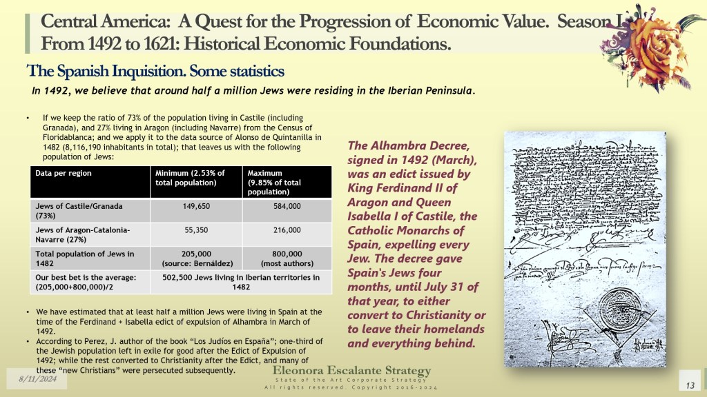 In short, we believe the Spanish Inquisition was the last remedy, that utilized religion, to finalize the process of “Reconquista”. It was invented to resolve future conflicts between these minorities. It was the “cheapest business strategy” to finally kick out, kill, or remove whatever was not liked by the new Castile-Aragon regime. With the Spanish Inquisition, we can demonstrate, or it is clear how political authorities, most of the time, utilize religious power to gain or install their policies.