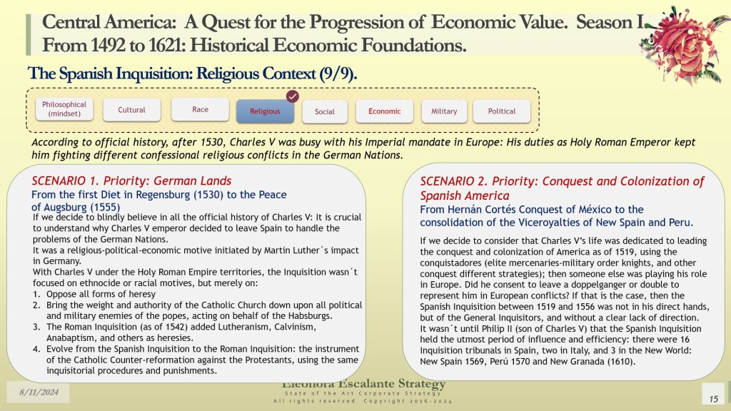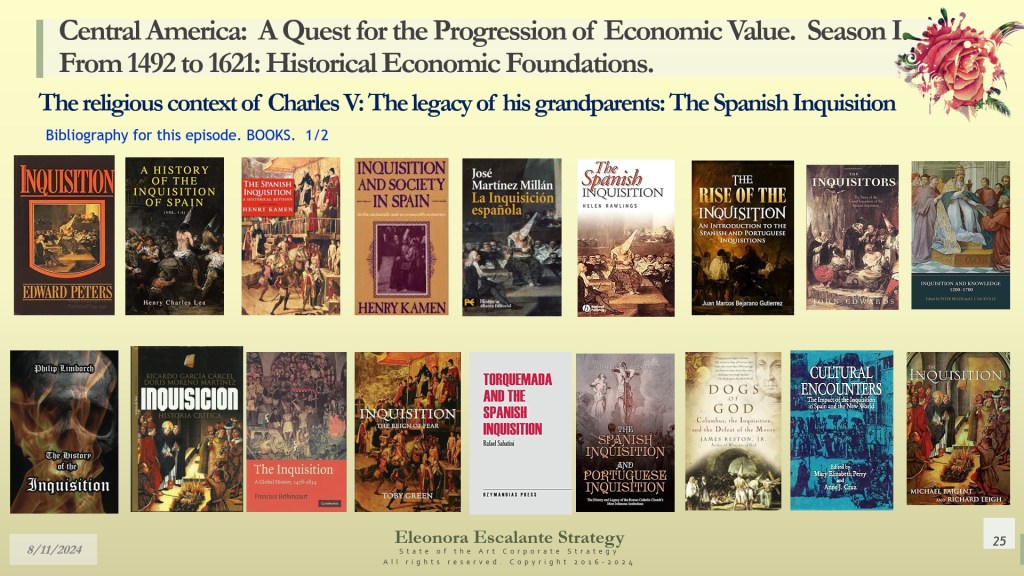 We are looking forward to finishing Season I on December 27th. Then we will take three weeks of vacation for our strategic mindset maintenance. Season II of the saga “Central America: A Quest for the Progression of Economic Value” will begin as of Friday 24th of January, 2025. Season II will be shaped first with 4 weeks about the topic “Spanish America with a Medieval Allure: Conquest and Colonization”. Then we will continue with the life of Philip II (the son of Charles V Emperor), followed by the relevant aspects of Philip III (Charles V´s grandson); and finally, we will show you how Central America’s economic development was initiated. I will share the new outline of Saga II before the end of this year. Do not lose sight, please! The roots of the strategic economics of the Habsburg-Castile/Aragon Economic Model for Central America can´t be understood, unless we dedicate enough time to all that we have been investigating during Season I. Stay tuned.