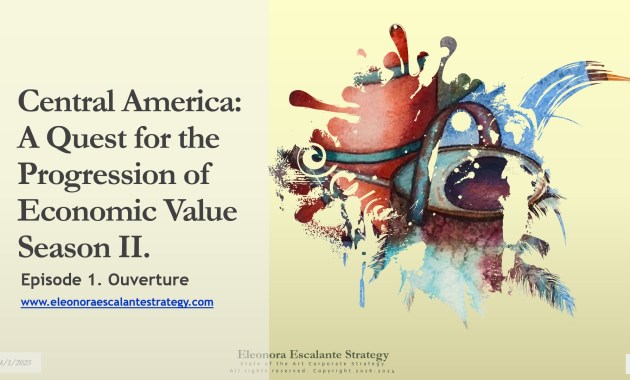 Central America: A quest for the progression of economic value. Season II. Episode 1. Ouverture The year 2025 embraced us with courage and hope.Happy new year for all of you. Today, we are overjoyed to begin our first saga of the year. Season II of […] eleonoraescalantestrategy 24 Jan 2025 Leave a Comment