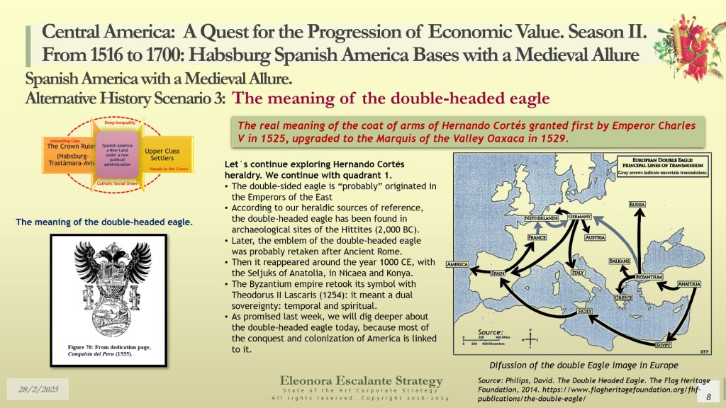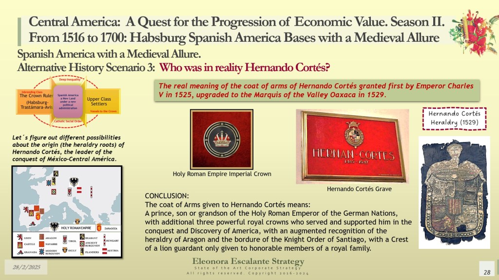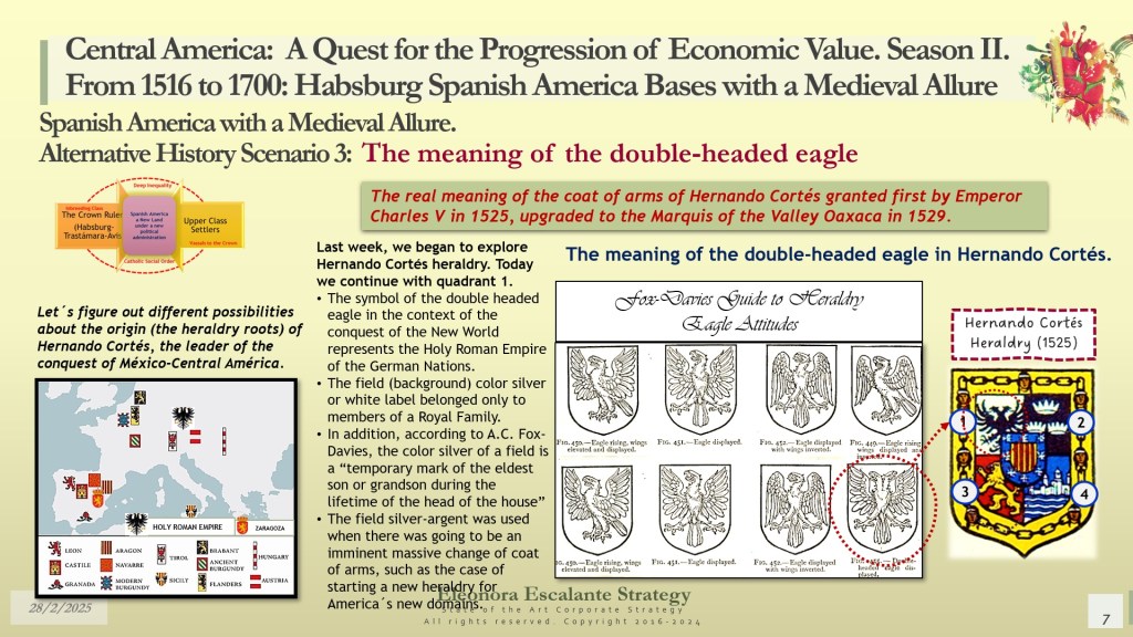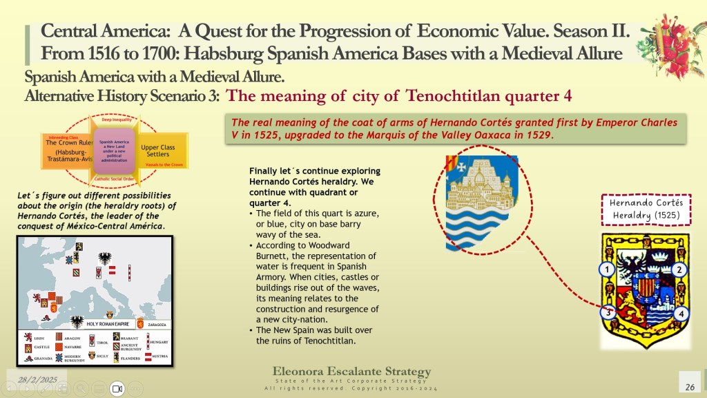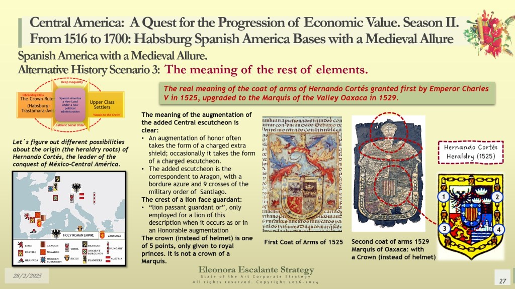 Happy weekend to all our magnificent readers. Today, we will finalize our strategic analysis and deconstruction of the meaning of the coat of Arms of Hernando Cortés. From the point of view of the corporate strategy of the medieval leaders, it has been imperative to understand the nature of the “America Conquest Inc” project. We have dedicated 5 episodes to it because it matters more than you imagine. Last week, we scanned the importance of an inquisitive heraldry approach. We expect that you may have all the elements to make a sound judgement too.