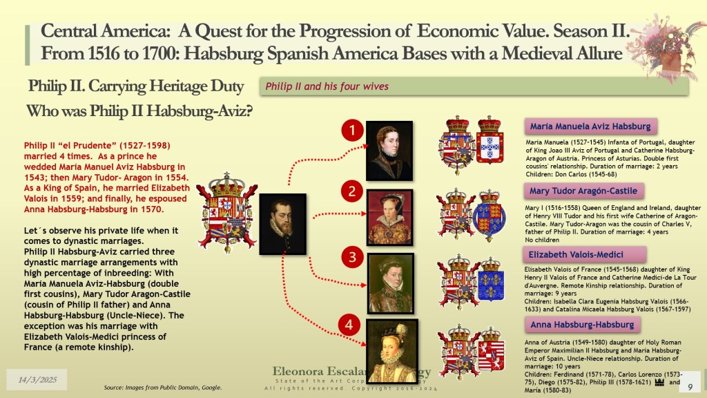 - The proof of evidence of our latter paragraph is what Philip II Habsburg Aviz (1527-1598) performed during his reign. Our work (from slides 6 to 25) shows the most relevant aspects of how Philip II was achieving the heritage duty that his famous father instructed him in letters, wills (several testaments), and training lessons. Philip II was prepared as a king under “Castilian terms.” His formation was clearly based on Spain. Despite his mother being Portuguese, he only spoke Castilian. He made no effort to learn French or Dutch dialects at all. Charles V Emperor cut the cords of his domains in Germany, by leaving the Holy Roman Empire to his brother Ferdinand, not as a sign of weakness, but as a strategic move of strength. If Ferdinand Habsburg Castile-Aragon (1503-1564) participated in the conquest of Spanish America, we truly don´t know it (I am not focusing this research on him). But it might be a potential scenario.