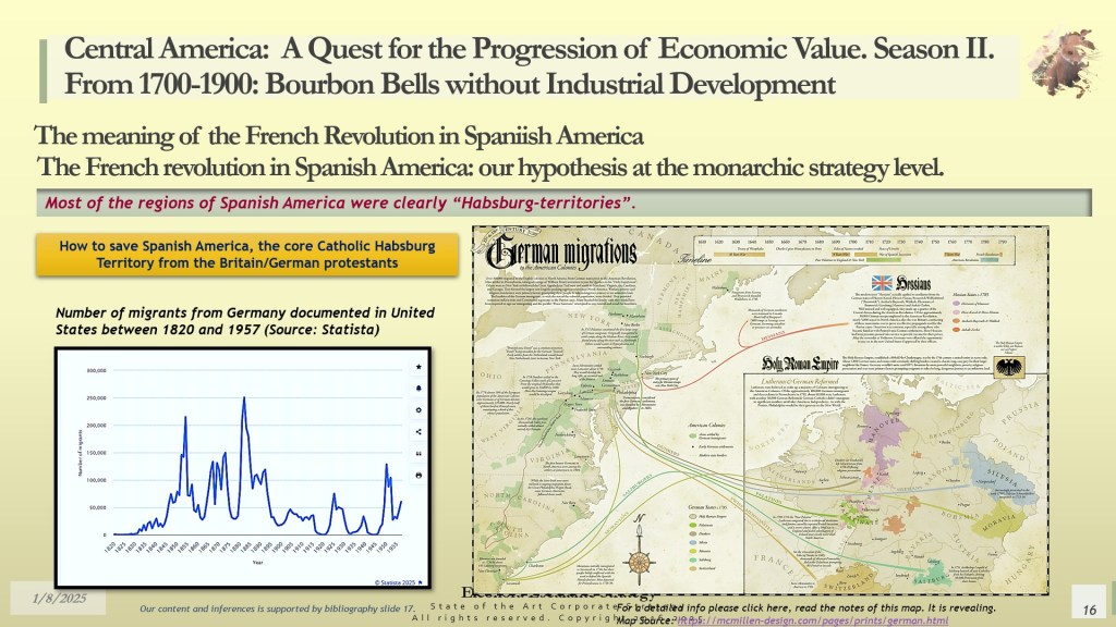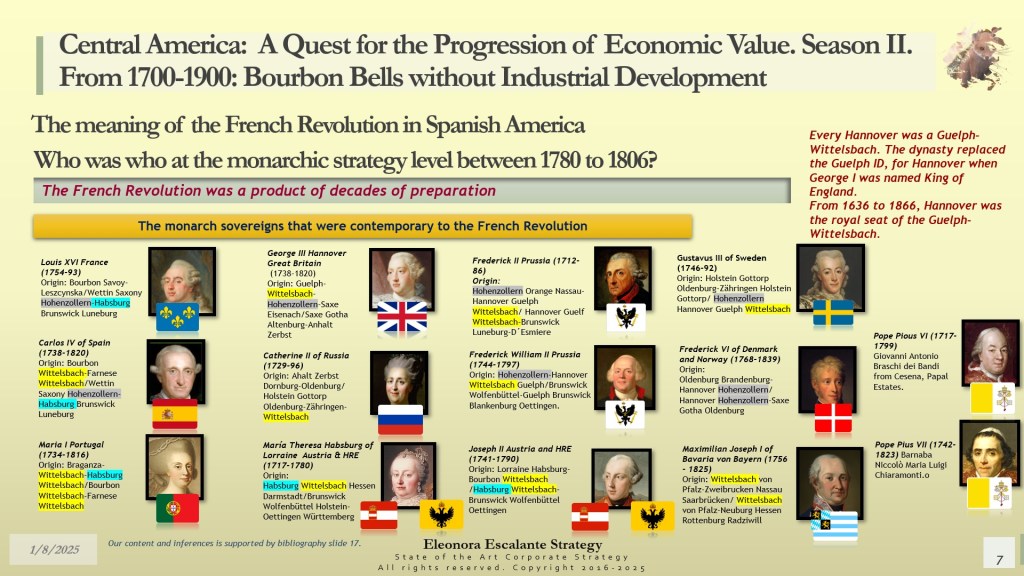 This episode is a different interpretation of the French Revolution from the perspective of the necessity of the German Protestant territories of the Holy Roman Empire to expand into America. Great Britain was ruled by a German king who identified himself as from Hannover. However, King George III of England agglutinated all the following german protestant dynasties: Guelph-Wittelsbach-Hohenzollern-Saxe Eisenach/Saxe Gotha-Altenburg and Anhalt Zerbst. In consequence, the German Protestant nations were going to take the world by storm. The Spanish Habsburg successors (who traveled concealed to America and transformed themselves into new Creoles) had to defend their beloved Spanish America. If we see the French Revolution as a kindling or detonating period for the further independent movements of Spanish America, then and just then, we can comprehend why the German Protestant migrations were diverted to North America. Of course, there are some Wittelsbach (catholic) who migrated to America. Why is this fact important? Because the economic model of Latin America was planned following the philosophy of the immigrant rulers (creoles or not) who were leading the new governments to come. In Spanish America, most of her regions persisted with clear signs of thought (nation strategy decision making) with philosophical roots ingrained in the former traditional Catholic Habsburg administration. We believe that the Bourbons probably had no idea of this. Next week, we will land in the Why of Napoleon Bonaparte. There is a lot to learn during the following weeks. See you in our next episode. Thank you.