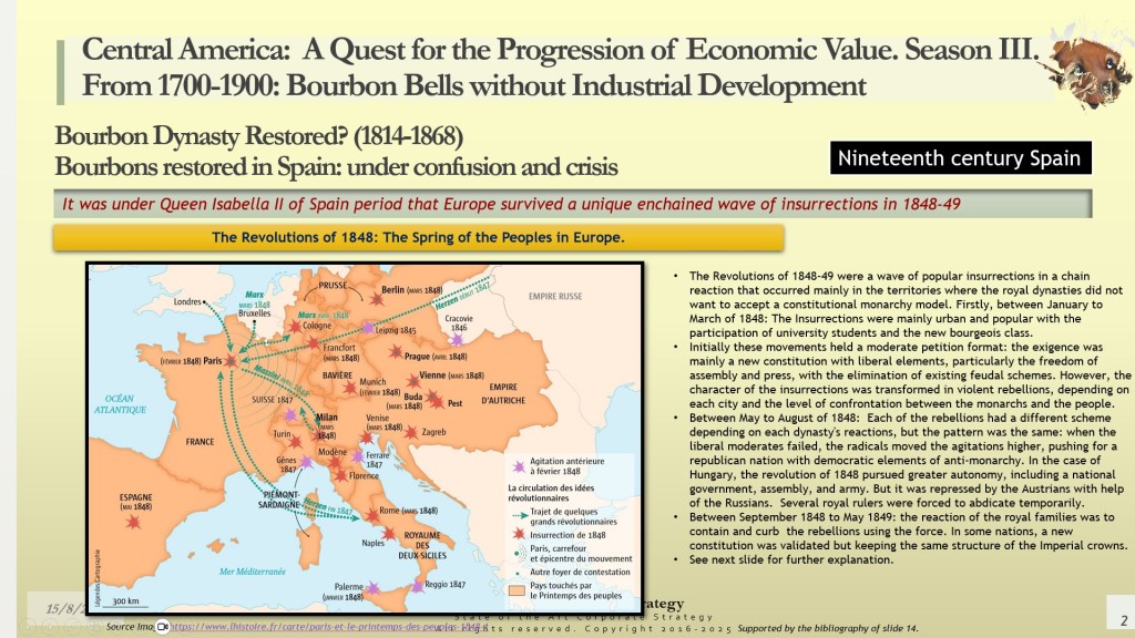 These slides are our dedicated effort to summarize what occurred in Spain between 1814 to 1868. We believe all the slides have the general elements required for the understanding of the chaos that the Spanish Bourbons were living. However, this chaos was not only happening domestically in Spain, but it was also occurring all over Europe. Let´s proceed to comprehend the revolutions of 1848-49.