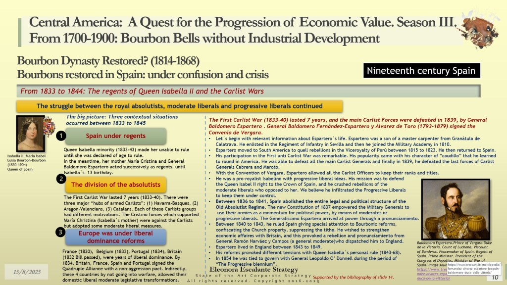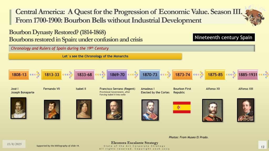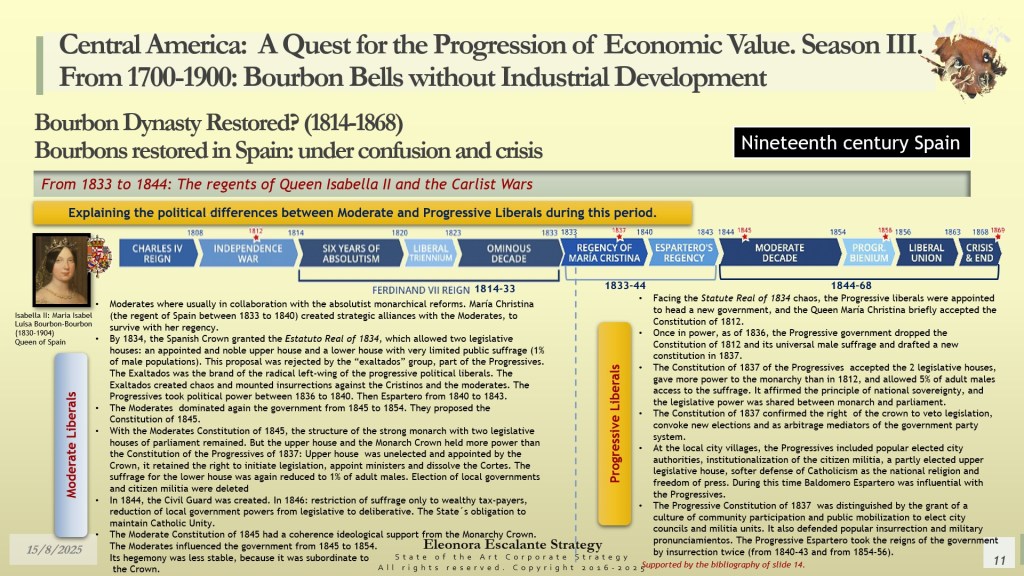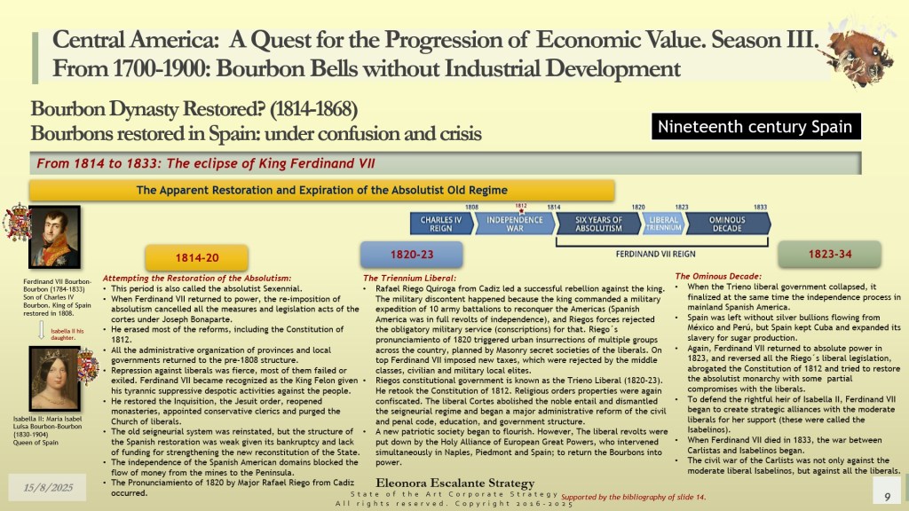 Central America: A Quest for the Progression of Economic Value. Season III. Episode 12. Bourbon Dynasty Restored: Ferdinand VII and Isabella II.