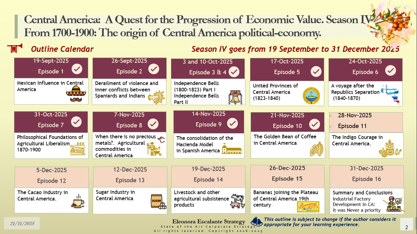 Central America: A Quest for the Progression of Economic Value. Season IV. Episode 10. The Golden Bean of Coffee.
