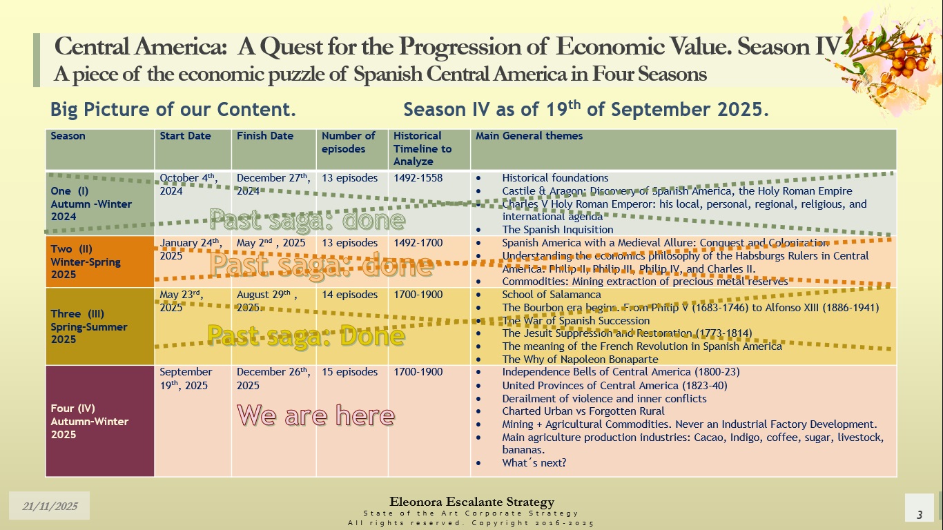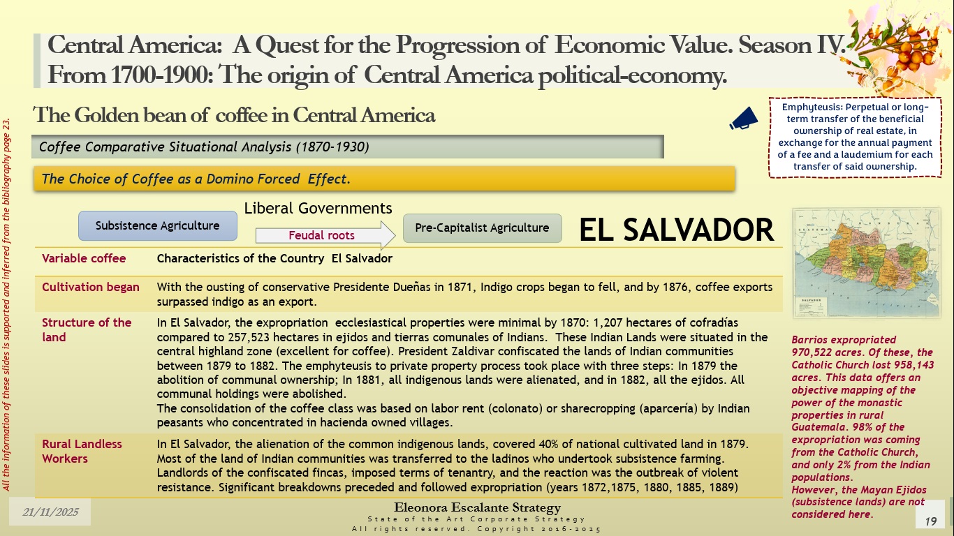 The first section of our journey starts with the main key takeaway from last week. Slide 5 is very important to comprehend, because it is the result of an extensive, consecutive comparative analysis of multiple sources of books and academic papers. This slide shows the genuine economic meaning of Independence from Spain for our region. It is a slide with a value of Cullinan diamond of 3,106 carats. It is a “without a doubt” inference after a year of thousands of pages of research. From my side, we are finally arriving at an unquestionable truth. It has been demanding because we need to read from multiple sources to find elements that connect what is obscured on purpose, or are not explained properly, and we are dragging 525 years of jumbled conceptual misinterpretations about Spanish Central America.