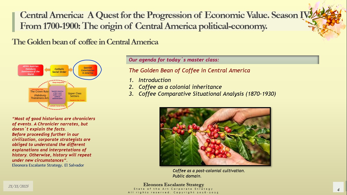 Strategic Reflections about Central America: A quest for the progression of economic value. Season VI. Episode 10. The Golden bean of coffee in Central America.